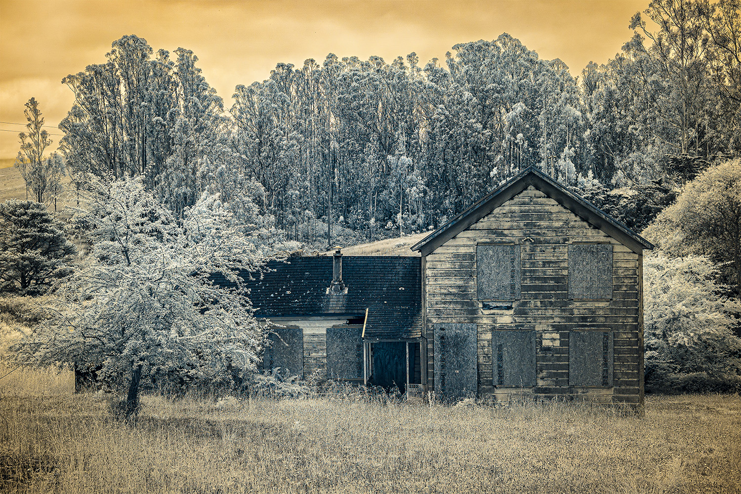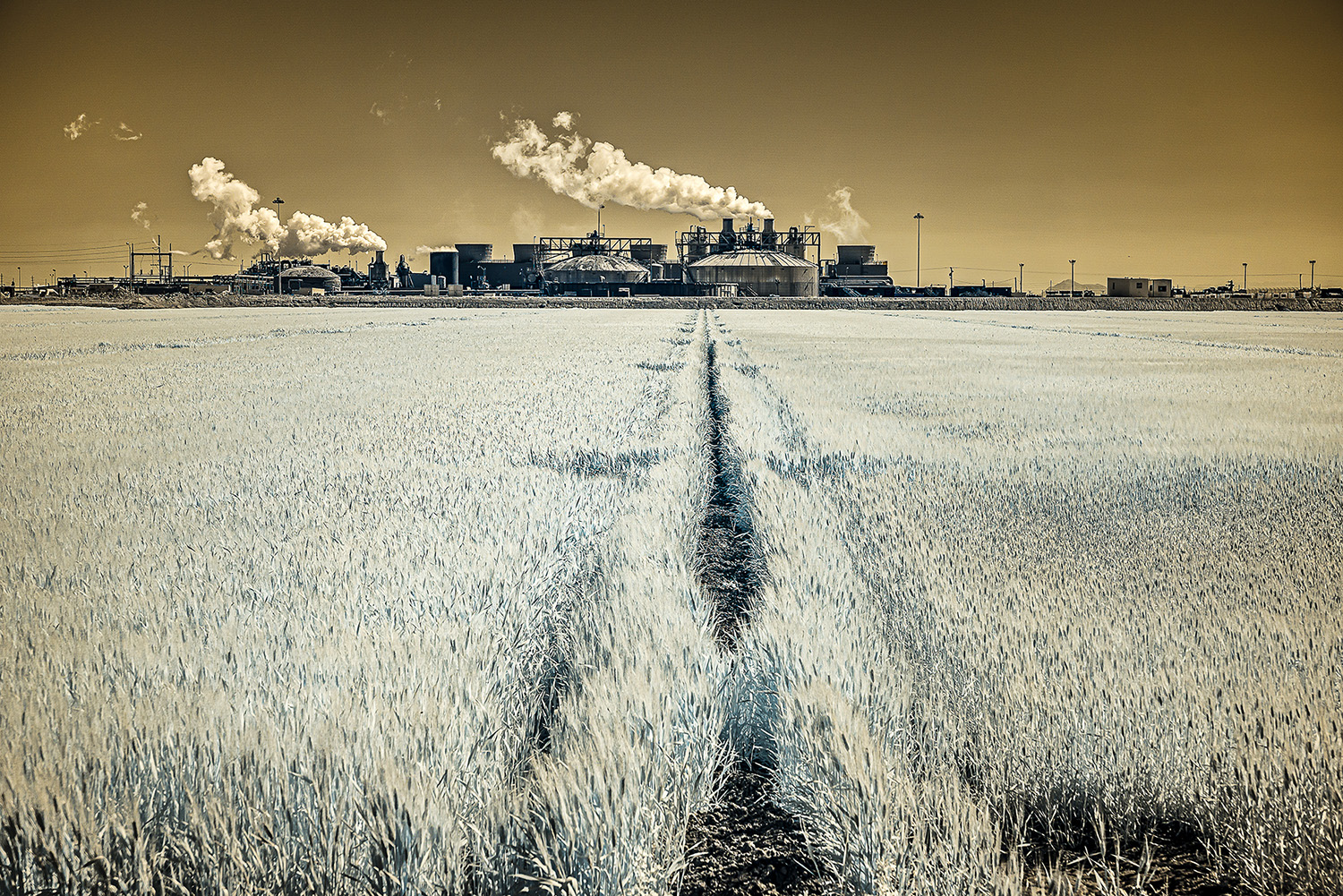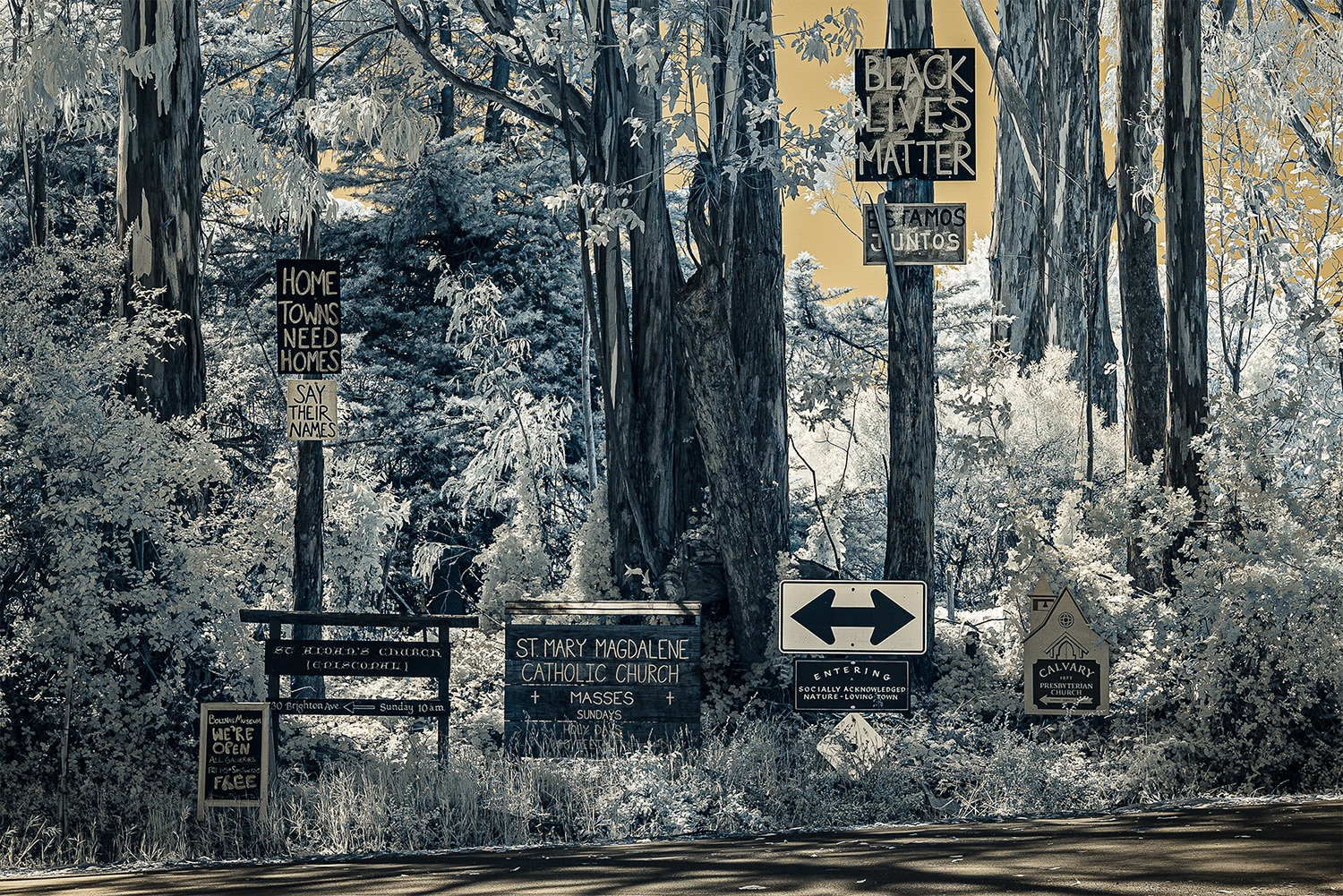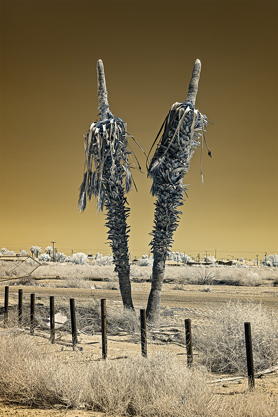 Using an infrared camera to capture light beyond the visible spectrum, I reveal the unseen—offering a glimpse into alternative perspectives that exist beyond our own viewpoints. The gold tones in the images evoke California’s paradoxical identity as the Golden State: a place where the promise of prosperity coexists with deep fractures, in both the land and the culture.